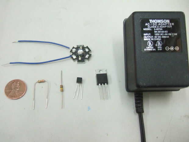 fuente de alimentación: utilicé un transformador viejo de la "fuente", o puede usar pilas. para encender un solo LED cualquier cosa entre 4 y 6 voltios con corriente suficiente va a estar bien. es por ello que este circuito es conveniente! puede utilizar una amplia variedad de fuentes de energía y siempre se enciende exactamente lo mismo.