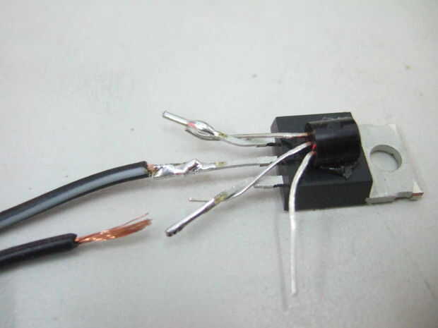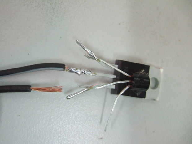 en primer lugar, pegamento Q1 al revés en el frente de Q2 por lo que es más fácil trabajar con. Esto tiene la ventaja que si hace mucho calor Q2, causará Q1 reducir el límite de corriente - una característica de seguridad!