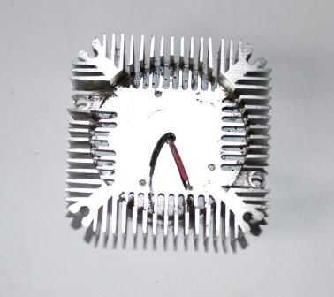 2. Perfore un agujero en el centro del disipador de calor para los cables rojo y negro sobre la placa de circuito de LED para ir a través.
