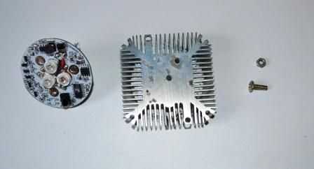 3. la placa de circuito tiene 3 agujeros donde fue atado al globo. Utilice uno de estos y otro agujero en el disipador de calor y utilice un tornillo para sujetar.