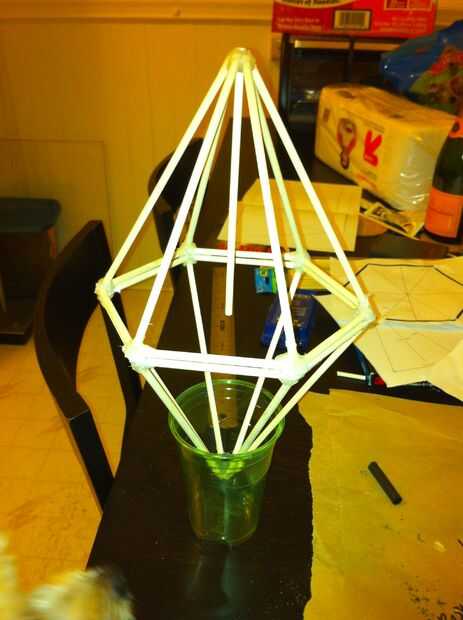 Cuando hagas la parte inferior de la estructura, en lugar de la conexión de pasador los puntos juntos, usan algo hueco, como el tubo de un bolígrafo BIC. Tendrá el diámetro a ser lo suficientemente grande como para que 1) deslizarse a través de los cables de LED y 2) darle una manera de fijar la estructura al polo, (es decir, un gancho de alambre enderezado en un palo)