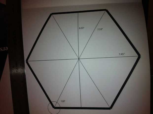 La longitud de los verticies del hexágono hasta el punto de la estructura es de 7"