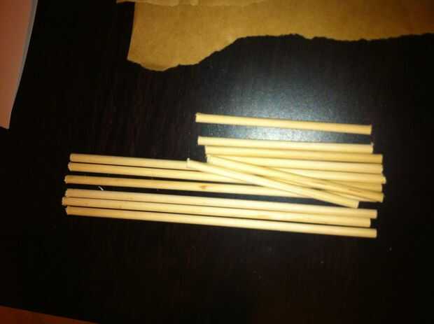 Poner una clavija de madera entre los postes en la parte superior de la estructura para intentar conseguirlos uniformemente espaciadas juntos. Pegamento caliente se enfría muy rápido así que deberás ser rápido, pero también viene de madera y papel muy fácilmente, por lo que es una ventaja para usted.