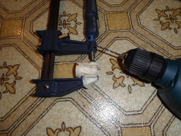 El cobre ahora necesita taladrarse. (perforado): en primer lugar, marcar. 30" de la tapa y haga una sangría con un punzón de acero. Mover. 25" más y repita. A continuación medir. 30" de la parte inferior y marca con el acero del sacador (sólo si echan a la Asamblea de interruptor). Ahora debe tener 3 hendiduras en el cobre. Cubre el cobre cinta adhesiva excepto en las áreas sangradas. (en caso se desliza la broca) Abrazadera cobre y uso una 1/8" broca para taladrar a través del cobre. Asegúrese de taladrar a una velocidad muy baja.