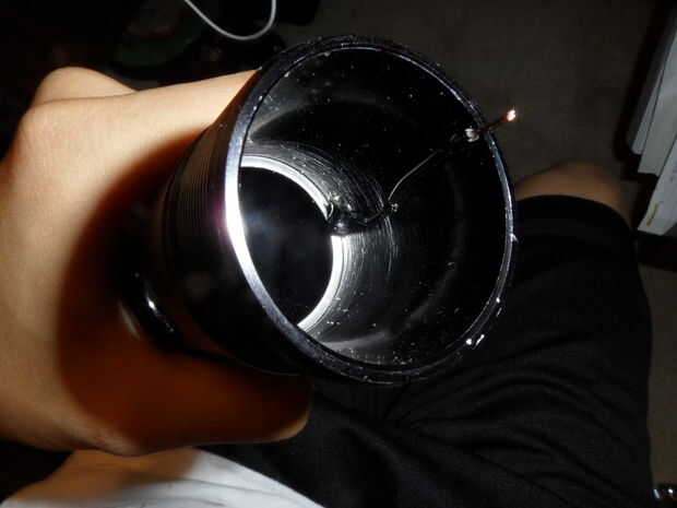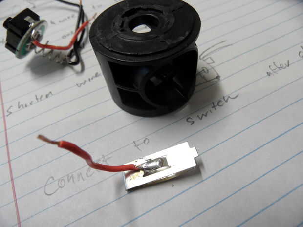Si tuvieras problemas de interruptor, Lee este párrafo. Antes de insertar todo en el tubo de la linterna, arena de la zona anodizada dentro del tubo de la linterna, cerca de la abertura. Después de hacerlo, soldar un cable negro a la parte que sólo arena y conecte el cable negro del agujero inferior al alambre que usted apenas soldadas. Ahora es un circuito completo.