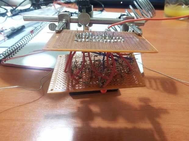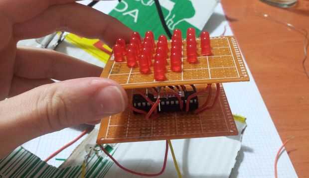 Después de probar la matriz, programé el Arduino con el microcontrolador con el reloj interno. Entonces me sumo a las tablas y puse el ATMega328P en el zócalo.
