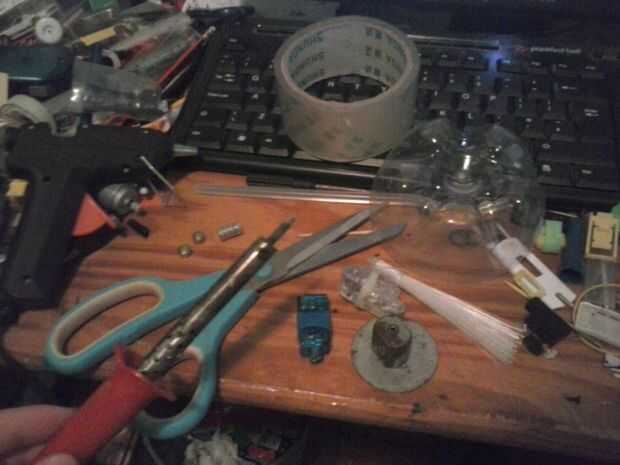 -Pegar palos y pistola de pegamento caliente