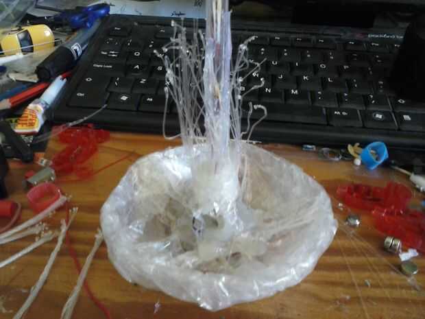 También tenía algunas fibras más largas, así que pegué 5 de estos hasta el borde exterior de la cúpula para un realismo adicional.