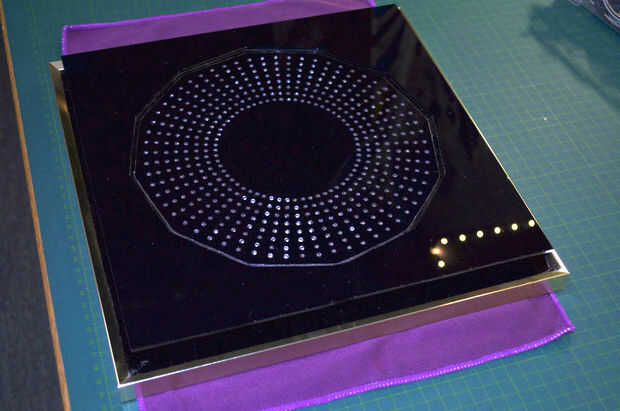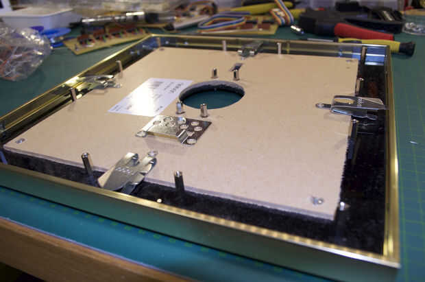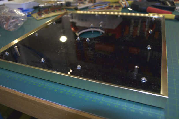 3. Ahora usted puede pegar a los cuatro espaciadores de un lado del marco para la placa frontal (punta cero la placa antes de pegar a los espaciadores se fijan mejor)