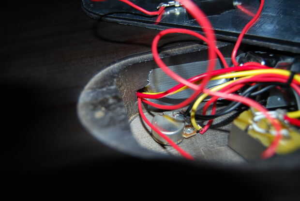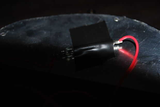 Usted tendrá que conectar un segundo cable donde conecta el + y - a la segunda serie de led. (Este cable necesita alcanzar el agujero de la segunda pastilla a la parte posterior de la guitarra donde el cuadro eléctrico es entonces medir primero).