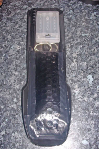 pegar cinta de velcro en tienda 99p (que uso para sostener la caja de batería en la parte inferior de la aleta)