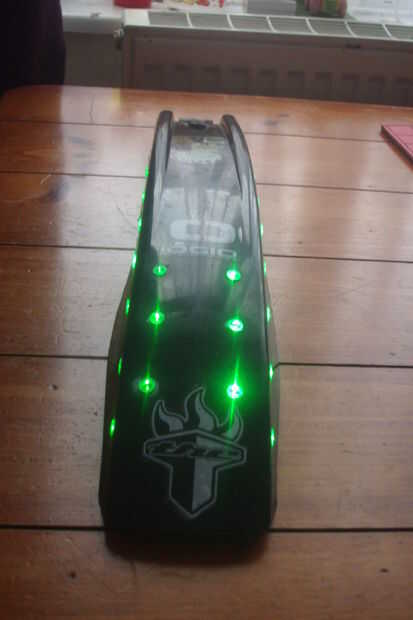 ACTUALIZACIÓN... he añadido algunas fotos más de mi guardabarros trasero (Activequipment guardabarros de tesco £7,96) que sólo lo he arreglado con leds... se hace de la misma manera como el guardabarros frente... solo una cosa buena es es más largo y allí porque se puede poner 2 sistemas en hacer 20 leds :)