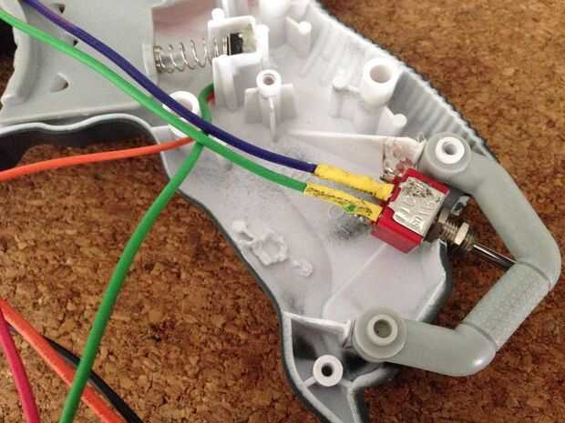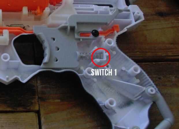 Vamos a tener 2 botones, uno alto, un poco. El alto es para el botón de pulgar (interruptor 2) y el corto es para el sensor de disparo (interruptor 1). También hay 1 interruptor de palanca que sirve para alternar el poder.
