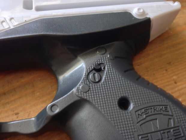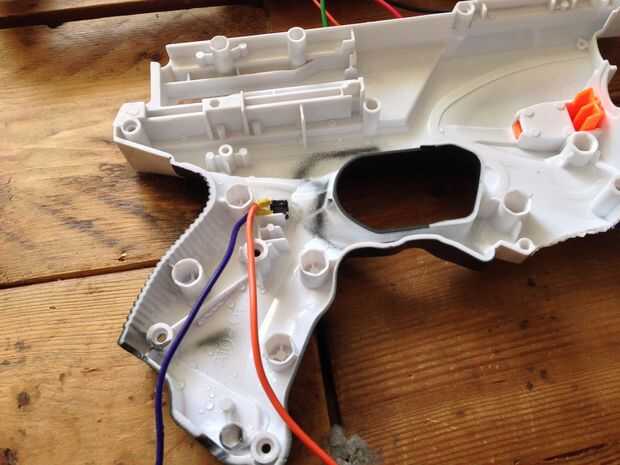 Esto requerirá que haga algunos agujeros en el caso de los botones y algunos cortadores para cortar el agujero para el interruptor de palanca. Utilizar pegamento caliente para fijar los botones y los interruptores. El sensor de disparo (interruptor 1) debe ir detrás de la primavera como se ve en las fotos.