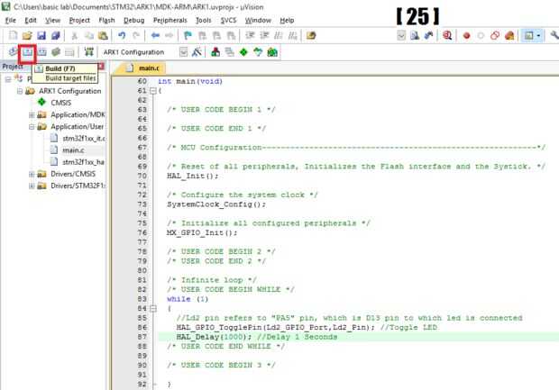 //Ld2 pin refers to "PA5" pin, which is D13 pin to which led is connected HAL_GPIO_TogglePin(Ld2_GPIO_Port,Ld2_Pin); //Toggle LEDHAL_Delay(1000); //Delay 1 Seconds