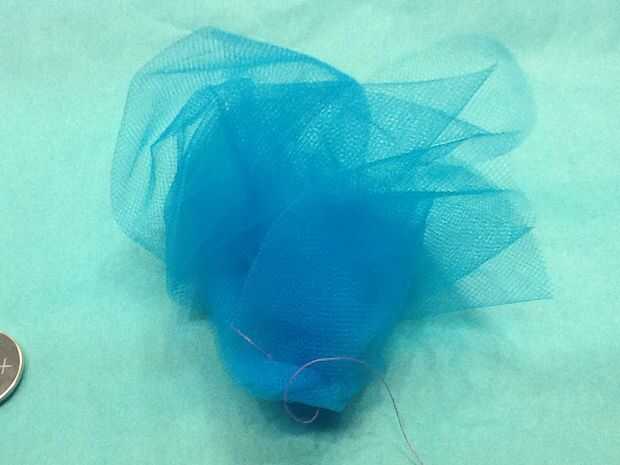 Cortar o doblar a la tela en la forma deseada. Aquí, utilizamos el tul para crear una forma de esponjado-tipo de flor. Podría hacer un simple animal de fieltro o alguna otra forma - su opción! Si es necesario, asegure su forma con el hilo de uso múltiple.