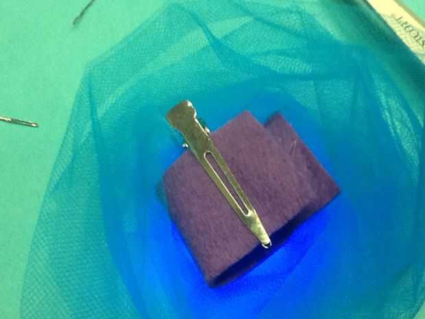 Usando pegamento o puntadas, coloque su creación pinback o pasador.