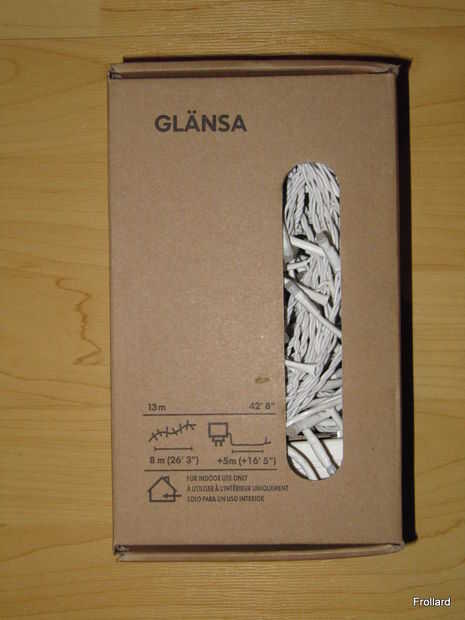 Ikea ' Glansa "llevado cadenas luz. De 144 blanco LED de soft por cadena, clasificada en 6 vatios, 5 metros de largo, CAD$ 20,00 marcado de $30,00. Trabajos hacia fuera a cerca de 14 centavos por led viene con fuente de alimentación y me ahorra horas de soldadura. Suena como un negocio para mí.