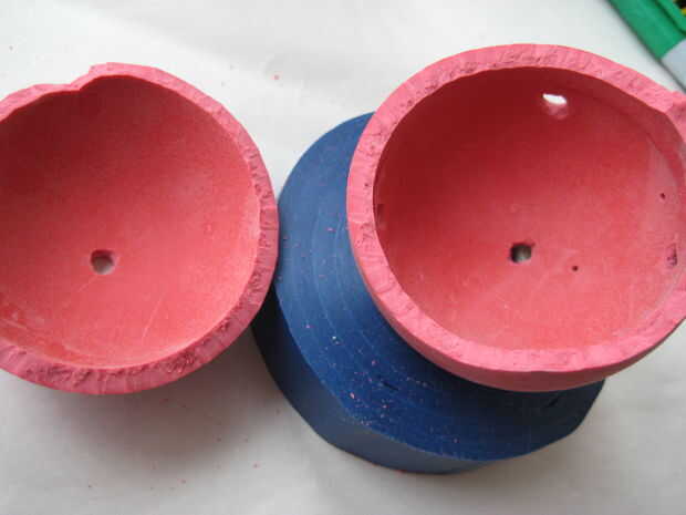 En primer lugar, cortar la bola por la mitad. Usted puede hacer esto con un cuchillo, y no importa si el corte es irregular. (Puede facilitar a encajar las piezas más adelante.) Asegúrese de no cortar demasiado cerca a los agujeros, sin embargo y recordar que el agujero para la cuerda debe estar en la mitad y los agujeros para los LEDs en la otra mitad.