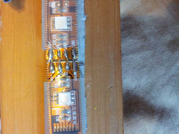 Esto me pasó por alguna razón desconocida y mi tira LED estaba fuera de garantía (por supuesto). La tira de LED trabajó un día bien y entonces parecía la primera imagen siguiente. Los primeros seis LEDs funcionado bien pero después de 6 LED, ya sea ninguno de los LEDs se muestran, o se demuestran para arriba de blanco, o de vez en cuando, unos cuantos al azar encendidos para arriba y el resto sería de. Pasó un tiempo tratando de depurarlo, pero finalmente se decidió a recortar. Después de cortar el segmento roto, de la soldadura de la tira de atrás juntos.