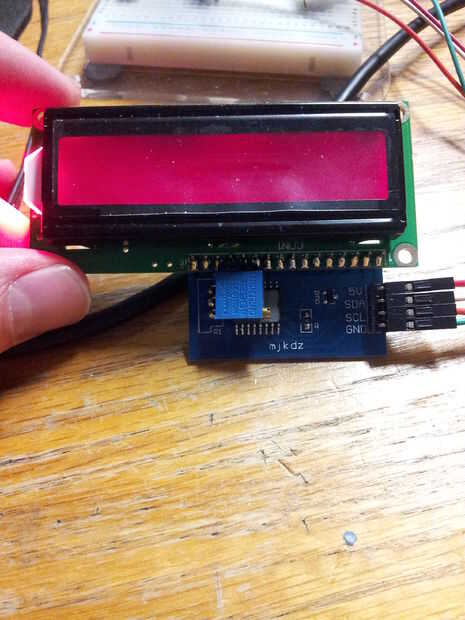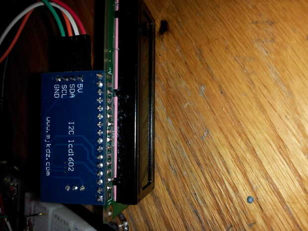El LCD a la placa de interfaz de Arduino de la soldadura debe ser bastante sencillo, pero terminó me cuesta un montón de tiempo y frustración. Como se puede ver en la primera foto, soldar la placa de interfaz en hacia atrás! No hagas eso! Es engañoso porque los trabajos de luz de fondo cuando la placa se suelda al revés, que inicialmente podrían hacerle pensar que está trabajando correctamente. No es así. Tuve que pasar varias horas para desoldar el LCD y luego reconectarlo (segundo y tercer cuadro). Moraleja de la historia: triple Verifique la orientación antes de que la soldadura. Además, la resistencia variable ajusta el contraste de la pantalla. Si todo está conectado correctamente pero no aparece en la pantalla LCD, le dan unas vueltas en cualquier dirección.