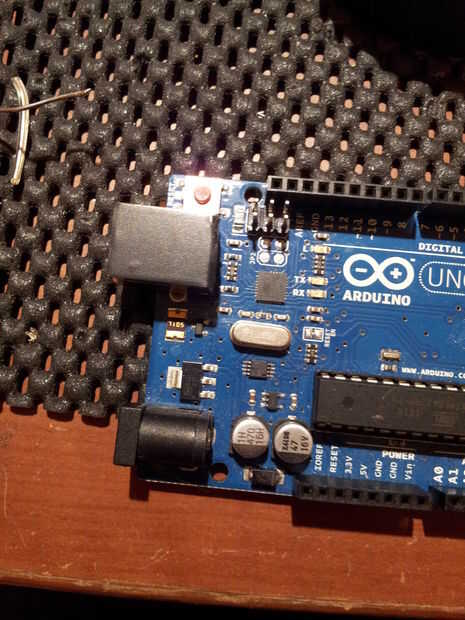 Finalmente, había soldado los cables de alimentación a sus lugares respectivos. Se necesita conectar el cabecero de gnd a tierra y el vin a la salida de 5v del transistor. Esto suministrará tu Arduino con energía cuando se enciende el LED Pong. No hacer nada con el pin de alimentación de 5v en la placa Arduino.