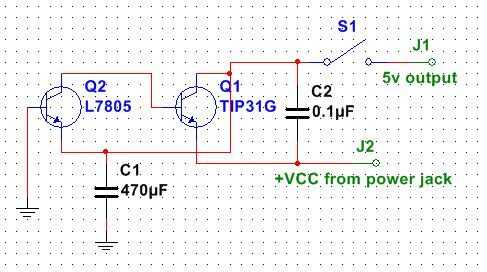 . Sólo asegúrese de que poner un disipador de calor en él! Si usted quiere hacer lo que hice, seguir el esquema (quinta foto). Fichas técnicas: TIP31C, L7805