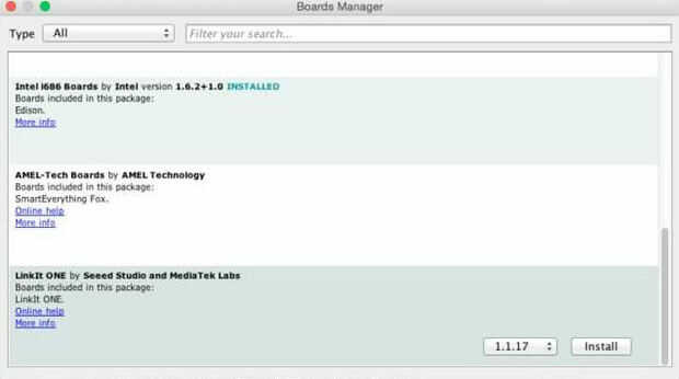 3. ir a herramientas--> Directorio--> Administrador de la Junta. Desplácese hacia abajo hasta que vea "Mediatek Linkit uno" y haga clic en él, a continuación, debería ver un botón de instalación, haga clic en él.