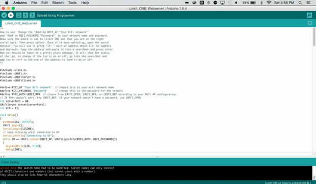 Subir el sketch que descargaste en el paso pasado yendo a herramientas--> Directorio--> uno de LinkIt entonces: