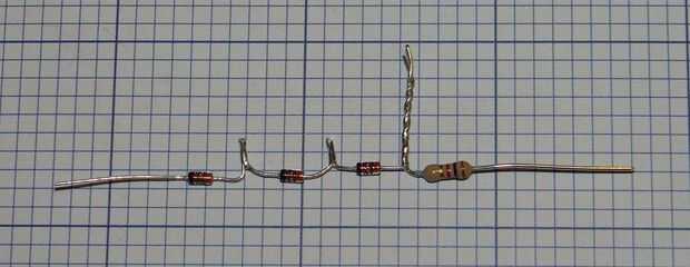 De la soldadura de tres diodos 1N4148 un una resistencia de 1K como se muestra.