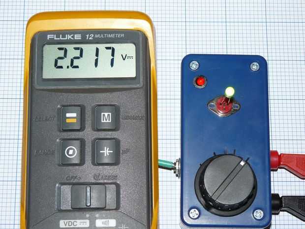 Un metro puede conectarse a los jacks banana para medir la caída de tensión directa del LED (Vf).