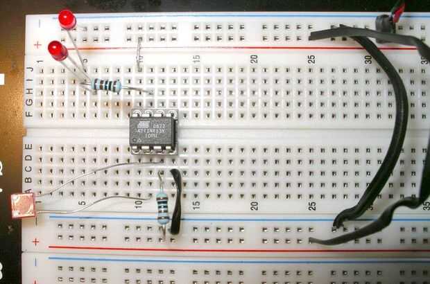 Tome otro en un automóvil Pinewood Derby con luces, esta vez con un Atmel ATtiny2313microcontrolador en (junto con un lío de cables). Yo no he comprobado, pero un brutocálculo sugiere que las luces se deben ejecutar durante aproximadamente 4 horas co