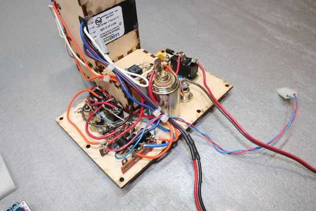 El cableado es simple "insecto muerto" punto a punto, tope feo, sólo tienes que seguir el esquema. Algunas cosas a considerar como usted alambre; Hay espacio limitado en el panel, doblar las zapatas del interruptor de batería de 90 grados para reducir al mínimo su profundidad. Mantenga todas las piezas y vestidos cerca del panel de cableado. Es una buena idea para definir el conjunto del panel en la caja antes de cablear. Esto le dará una buena idea de los problemas de separación que se enfrentará. Utilicé cable calibre 16 para la batería de las trayectorias actuales, 18 calibre para la alimentación y 24 para la conexión actual baja. El 16 es difícil de utilizar y estoy seguro de que usted podría conseguir lejos con el uso de 18 incluso para las vías de corriente mayor.