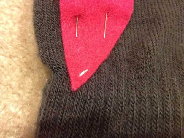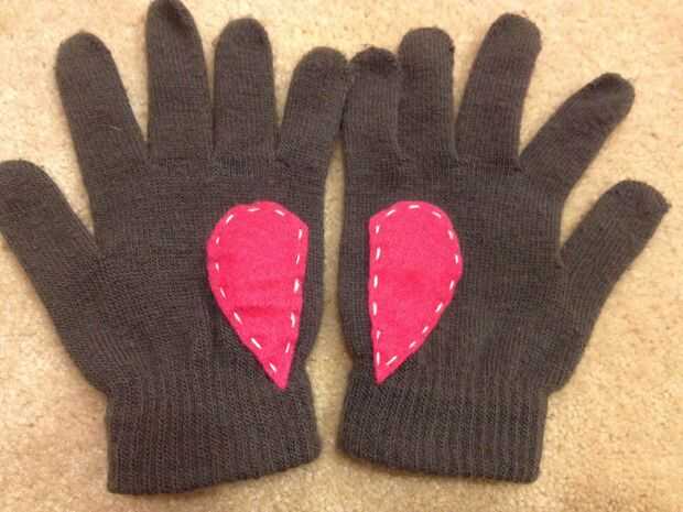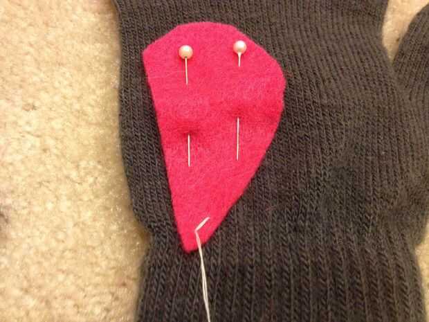 Paso 4: Coser piezas de corazón en guantes