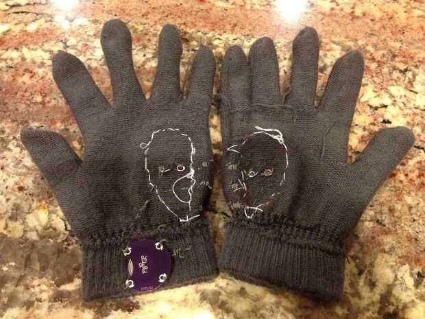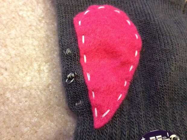 Usando los guantes, tocar tus manos juntos para formar el corazón. Intente su mejor para nuestro, donde es el mejor punto de contacto entre las manos. Marcar esta zona con un alfiler.