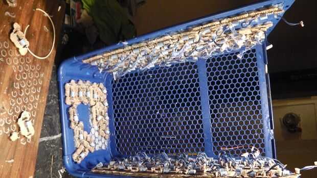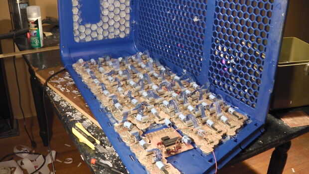 Coloque las placas de LED en el interior de la cesta utilizando silicona transparente más. Los tableros de microcontrolador y los reguladores de conmutación pueden también instalarse usando silicona.