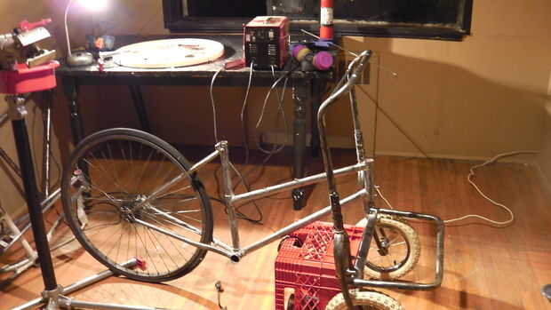 Es hora de empezar a soldar piezas de la bici. Este paso requiere dos correspondientes horquillas bicicleta de acero.