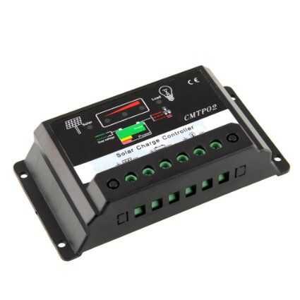 Utilicé un regulador de carga Solar MPPT de corrector 15A 12v 15A . Terminales rotulados batería ir a batería y terminales rotulados panel solar van a panel solar. Este controlador de carga particular era excesiva porque los paneles nunca llegar a ninguna parte cerca del límite de 15A. Un controlador de carga de 2A sería más apropiado.