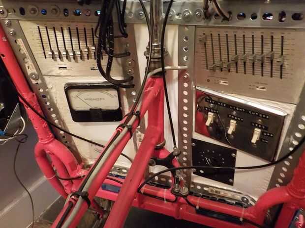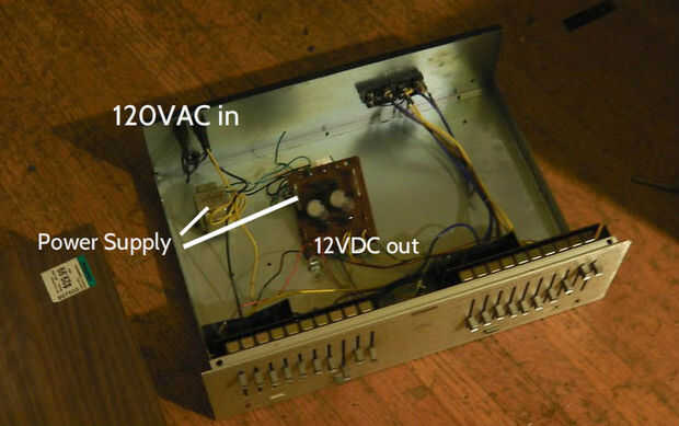 También montara un ecualizador gráfico estéreo de banda en la espalda. El ecualizador originalmente tomó 120 VCA, pero convertir a 12VDC era un pedazo de pastel. La fuente de alimentación convierte de 120VAC a 12VDC y fue en un tablero completamente separado, así que sólo tuve que quitarla y proporcionar 12V de las baterías.