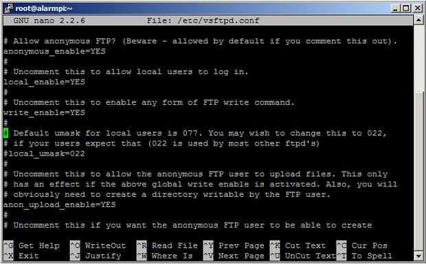 Utilice ctr-O para guardar el archivo, luego configurar VSFTP para lanzar en el arranque con el comando "sudo systemctl habilitar la vsftpd.service". Reiniciar el Raspberry Pi para activar el usuario. Ahora puede conectar a la frambuesa Pi a través de Filezilla cliente (filezilla-project.org).