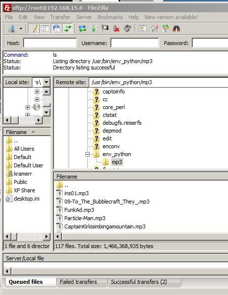 Debe proporcionar sus propios archivos de MP3. Dentro del directorio "env_python" crea un directorio llamado "mp3". En este directorio de FTP tus archivos MP3. Asegúrese de que los nombres de archivos MP3 que contienen espacios o barras. Linux no maneja esos bien.