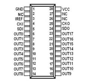 WS2803 las clavijas son diferentes entre el taladro pasante (DIP) versión y la versión de montaje en superficie (SOP). He adjuntado una imagen de la versión de compensación utilizada en estas placas.