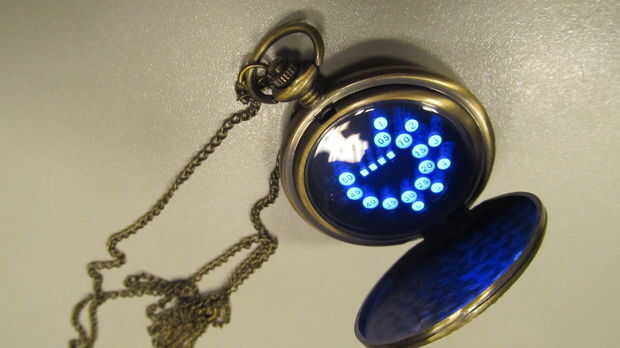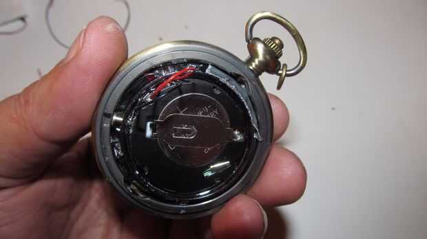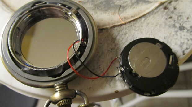 Ahora coloque el cuerpo del reloj led dentro del cuerpo del reloj de bolsillo. La soldadura de los cables para encender el botón del reloj led. Llevó la mitad de esta placa de resorte.