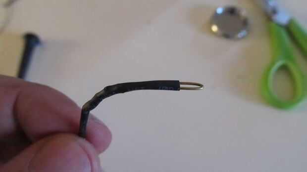En primer lugar necesitamos un nuevo interruptor para encender el reloj. Usé un pequeño alambre y soldar un cable en ella. Aislar con la tubería del encogimiento. Luego pegar el alambre con pegamento epóxico dentro del cuerpo del reloj. Otro cable va a la placa de resorte como tierra.