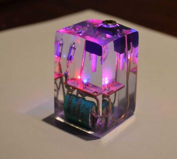Ahora debe tener un cubo de resina transparente apariencia bastante sólida con un LED incorporado dentro. Pruébelo y asegúrese de que todo funciona ok. Si no me temo que no hay mucho que se puede hacer pero empezar de nuevo!