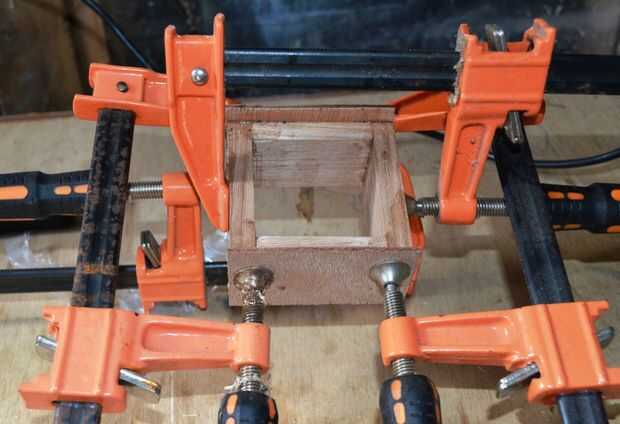 1. cortar 4 pedazos de madera para hacer los lados de la caja y la cola juntos.