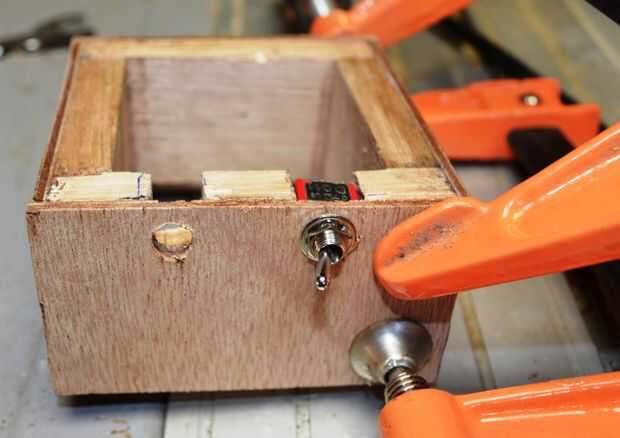 4. Perfore unos agujeros donde las ranuras están en el cuadro y agregar el interruptor y el adaptador.