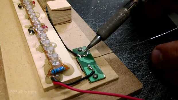 Cuando hice la tira del LED anterior, había soldado en dos largos (aproximadamente 1 pie) los cables. Ahora que todo está instalado, empecé a cortar estos cables, pelando los extremos y soldar en su lugar.
