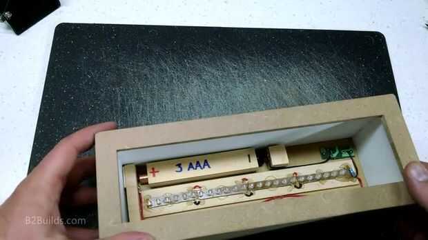 En este punto hice una prueba del sistema. Con el panel posterior en su lugar, el "puerta" positivo de la batería es cerrado, completando el circuito. Tuve que añadir a un pequeño espaciador a la "puerta" como que no era cerrar lo suficientemente apretado.