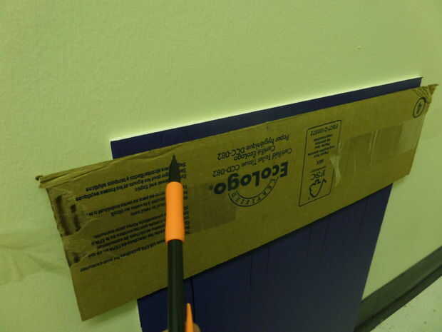 Después de esto, trazar un. 5" borde alrededor de cada uno de los tableros de cartel frontal en el lado hacia fuera. Estas marcas de guía sirven como guía para trazar la frontera de la cinta de aluminio. Esto agrega a la súplica estética de los carteles.